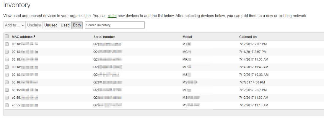 (Optional) In the Devices department, cheque the box for any devices that should be added to the network. If no devices exist in the inventory, click Claim and enter the series or order numbers to add them.